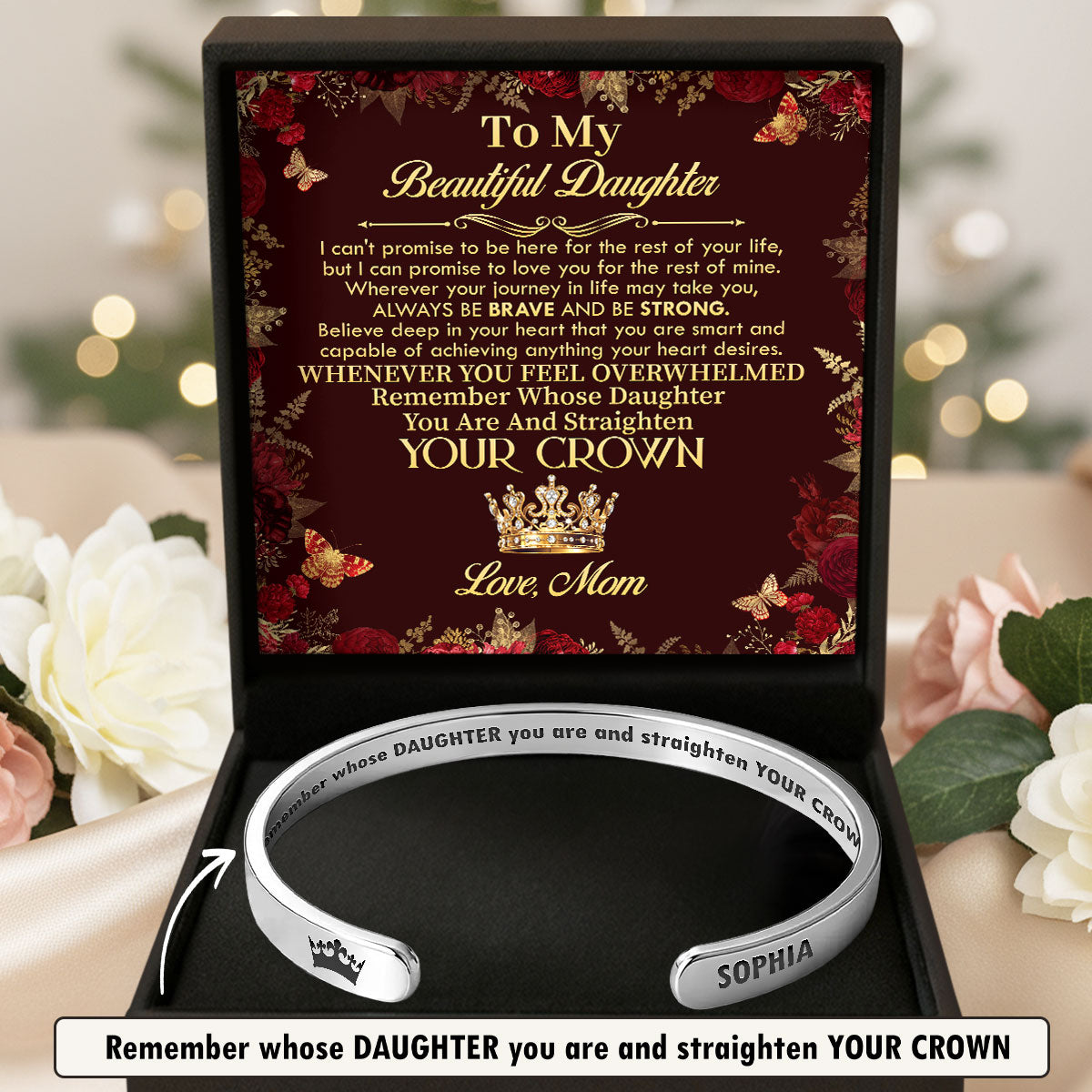 Straighten Your Crown - Personalized Cuff Bangle Bracelet With Box