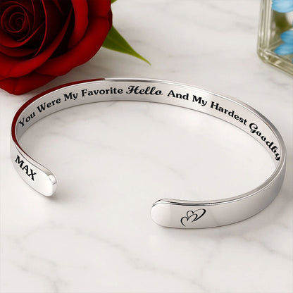 You Are My Favorite Hello And My Hardest Goodbye - Personalized Cuff Bangle Bracelet With Box